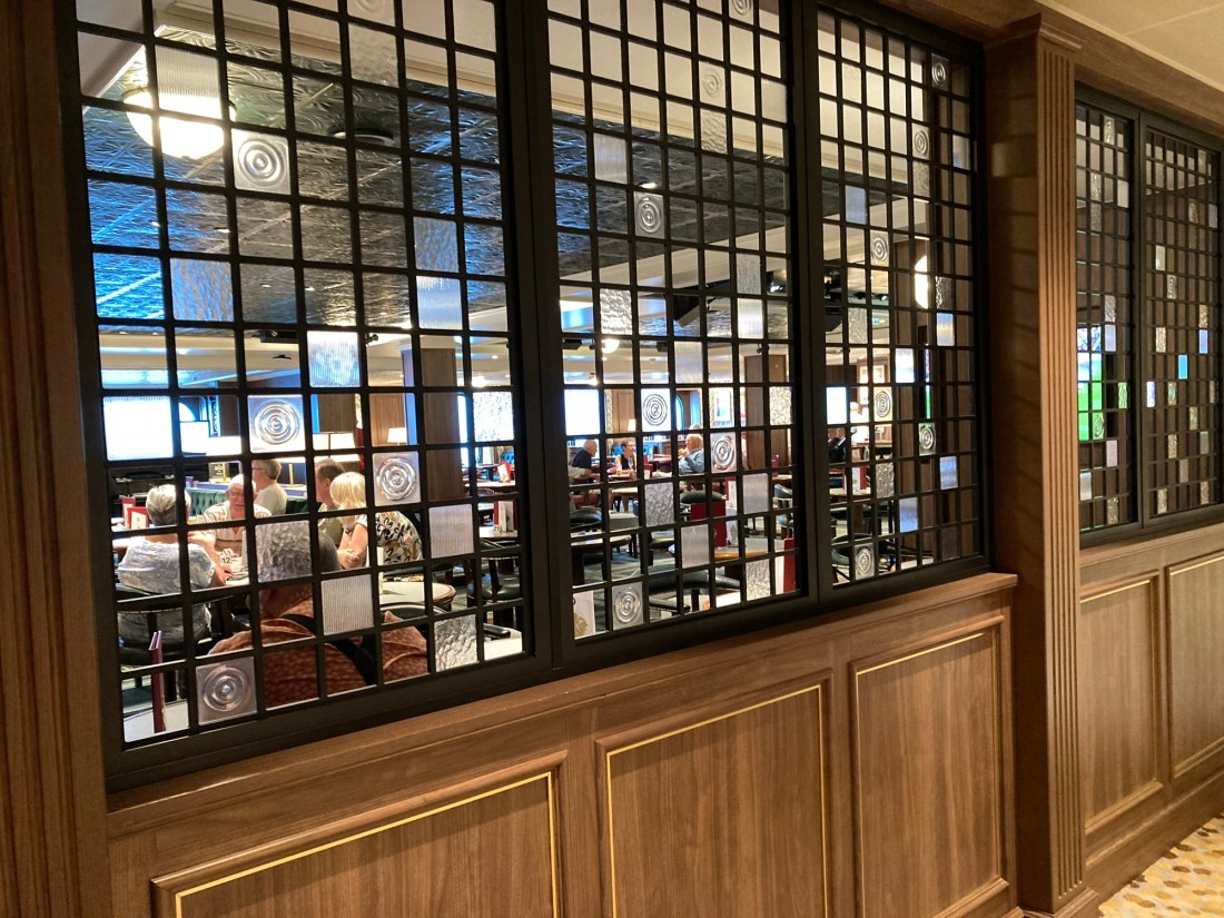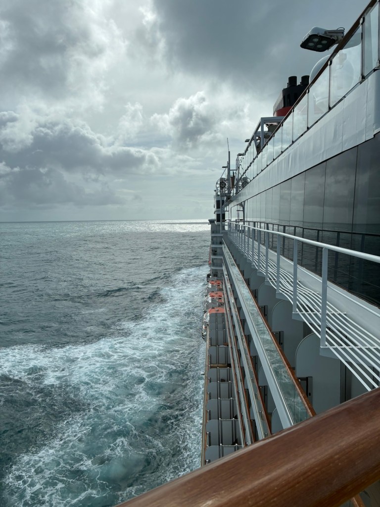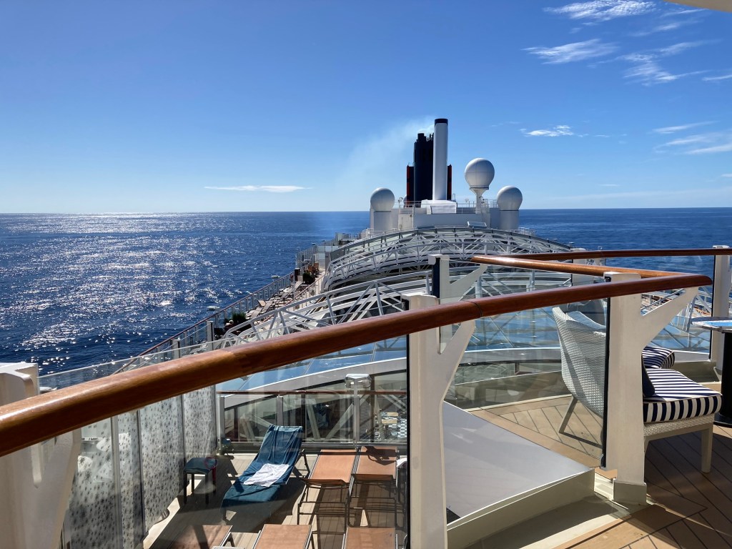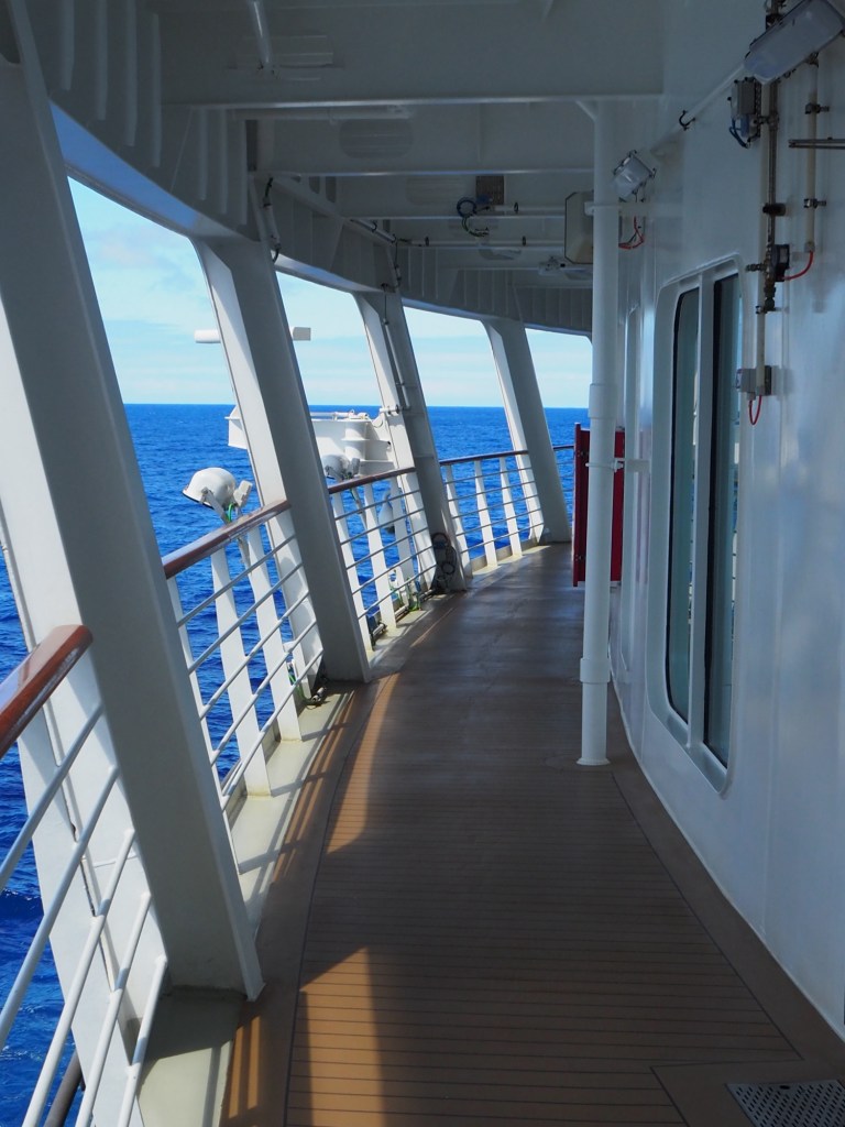 Just another sea day with its usual round of lectures and activities. I was struggling to think of what bit of the ship that I hadn’t already showed you, then I remembered Deck 3. This is the only outdoor part where you can walk a full circuit of the ship.