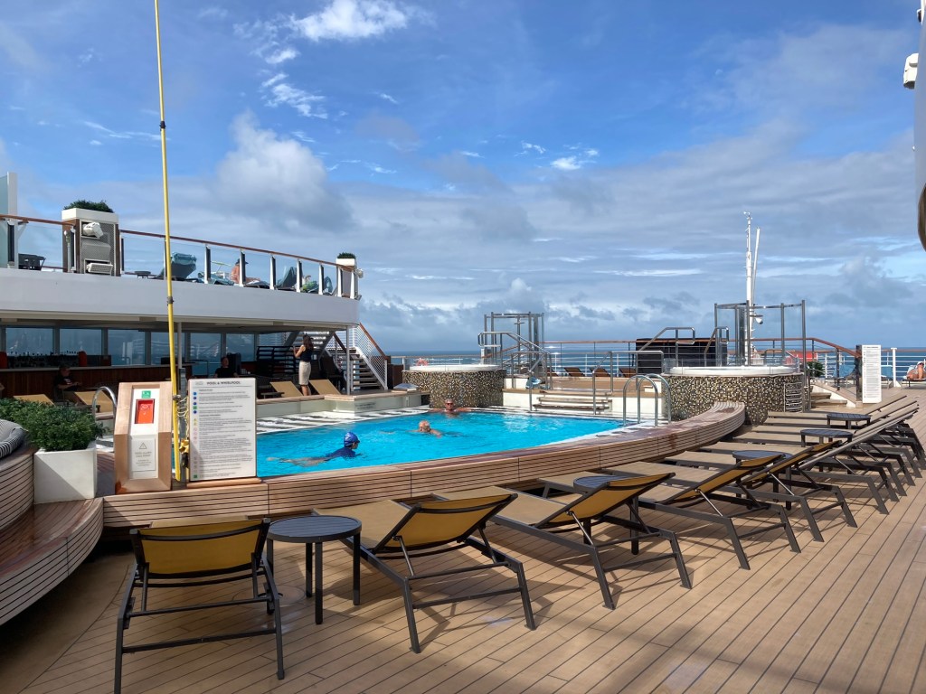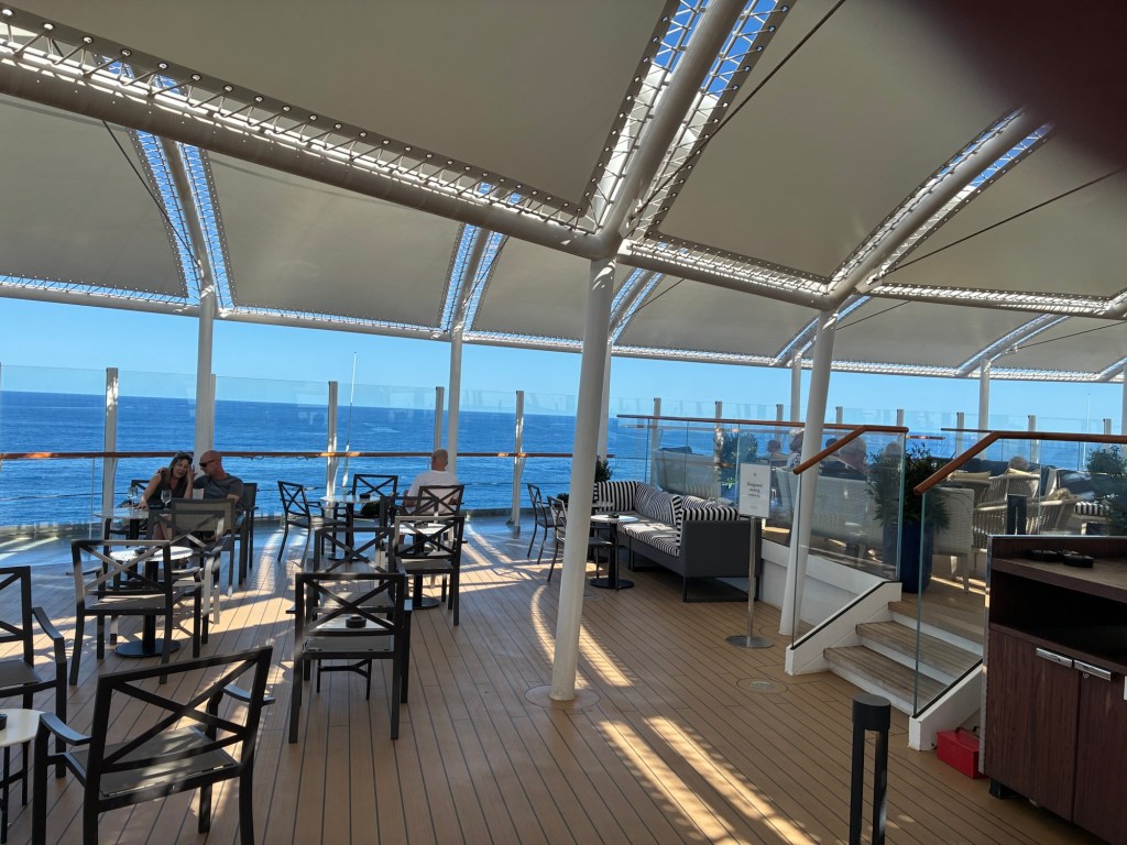As we wander around the ship we keep finding new places and here is one, the Panorama Pool Deck at the very aft end of Deck 9.