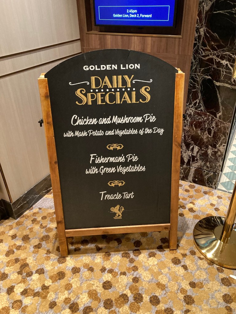 We had lunch in the ship’s English pub, the Golden Lion, which made a nice change of scenery.