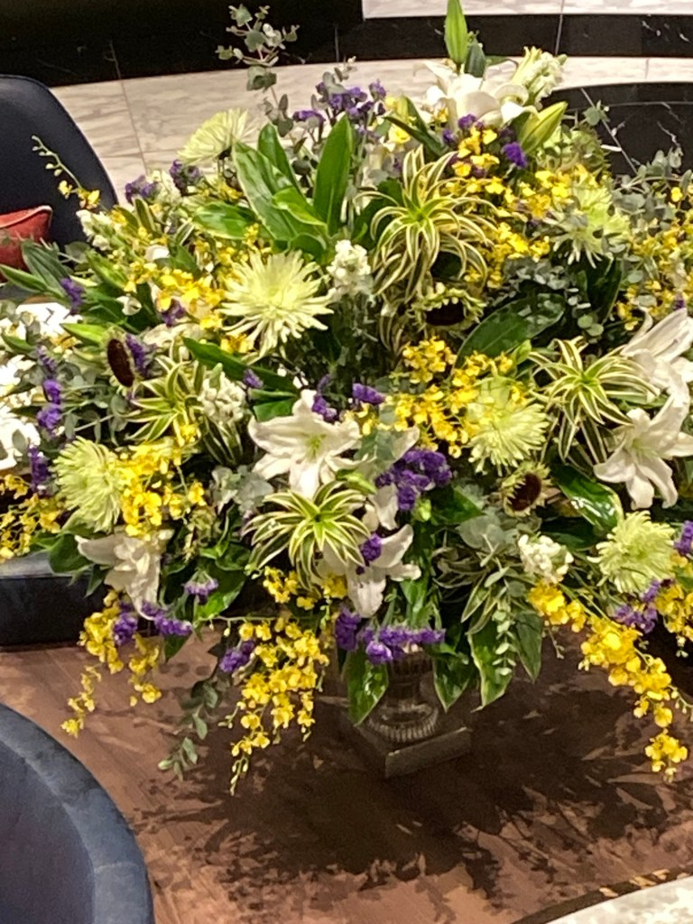 Our sea days pass one a lot like the preceding day but they do keep changing the flowers in the foyer.