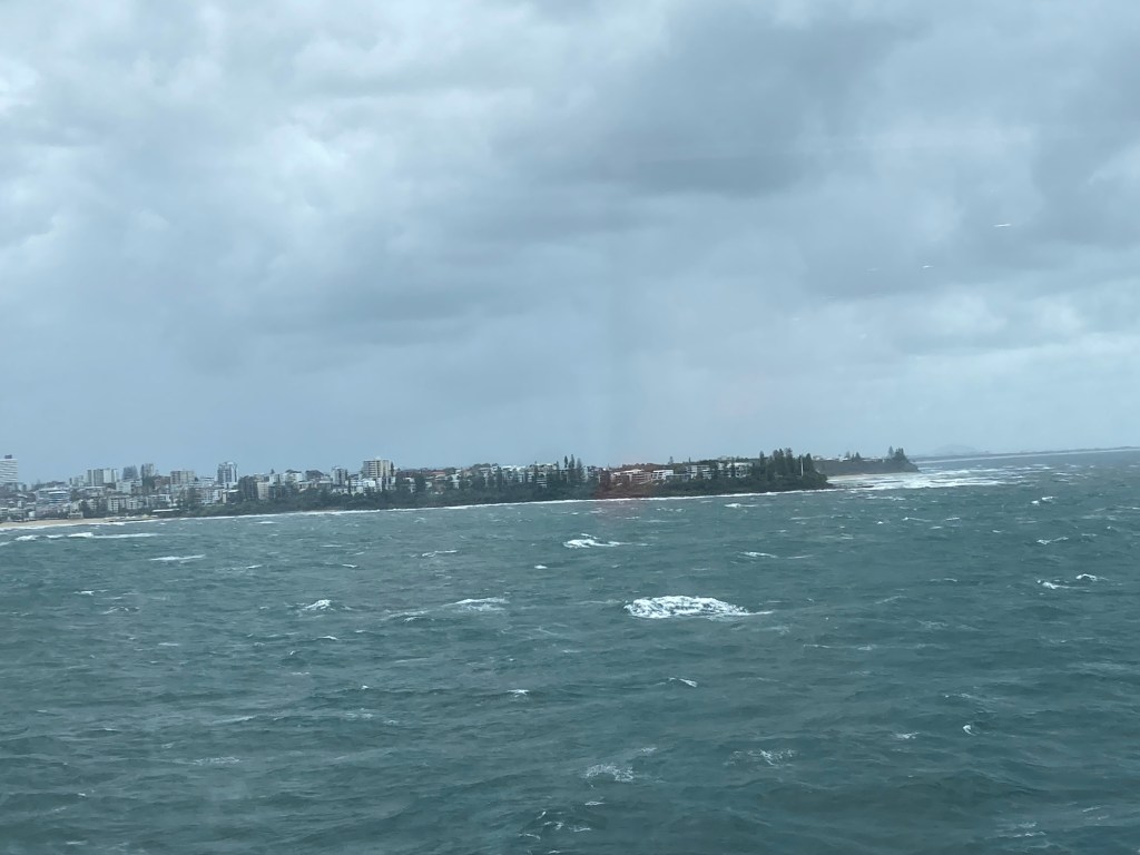 It’s interesting, sailing away from Brisbane we had to go up the coast in the wrong direction to almost Maroochydore before the ship could get out to sea and turn in the direction of Sydney.