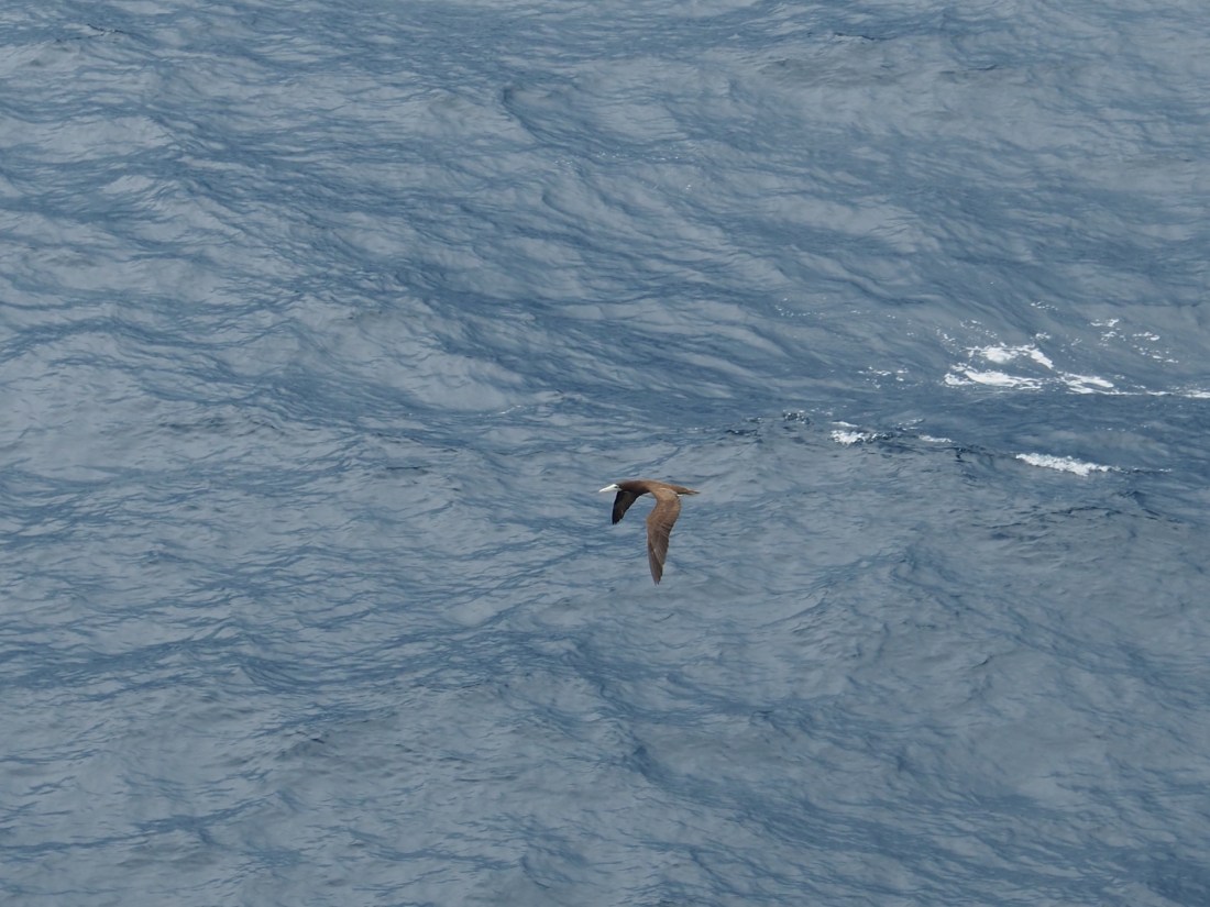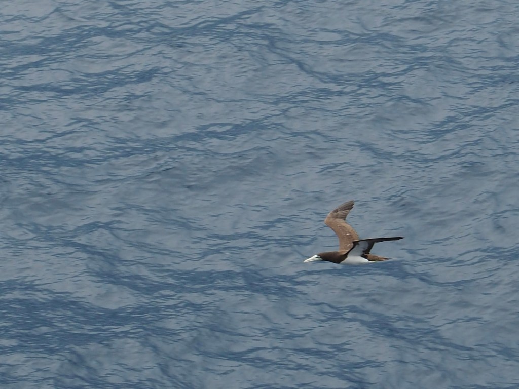 Nature is an amazing thing. As the ship ploughs thru the water it creates turbulance that bring minute food particles up towards the surface which attracts small fish which Brown Boobies dive into the water and catch. I wonder how long it took the birds to figure out it was worthwhile to follow ships.