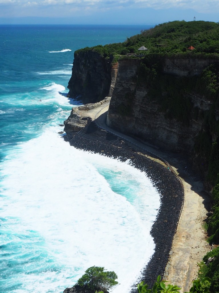 Our first stop was at the Uluwatu Temple which is claimed to date from the eleventh century. Prior to arrival our guide told us of the problem with monkeys there stealing hats, glasses and mobile phones etc. He claimed individual monkeys specialised in stealing specific items and recommended leaving hats behind, not wearing glasses if you could see without them and hanging on tight to your phone.