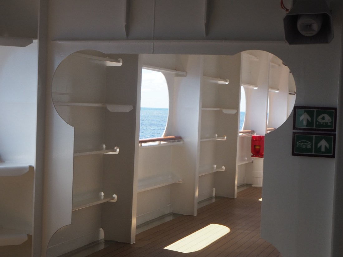 It’s also where all the ship’s life boats are, so sea views, for much of the circuit are pretty limited.