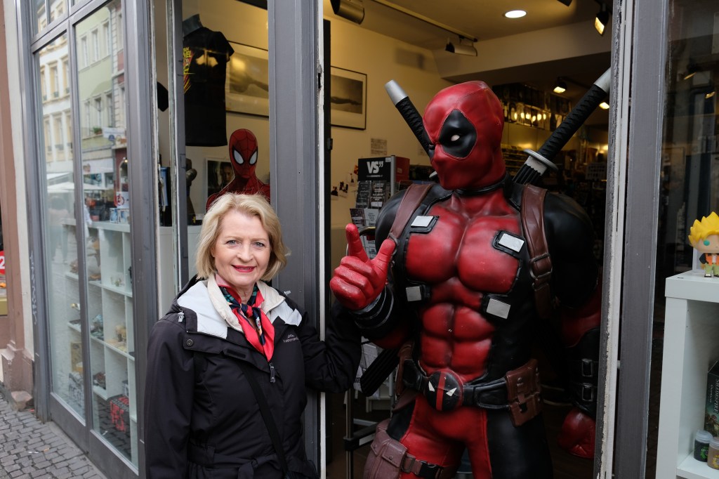 We docked this morning in the industrial river port of Mannheim. The wharf here was so high we climbed up to the roof of our boat and walked straight off.