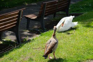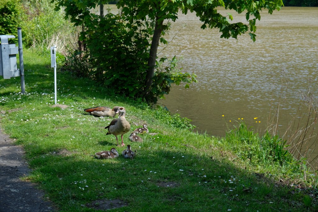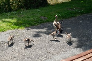 As we had about a 45 minute stop, we jumped off and had a walk along the beautiful river bank. We came across a mother goose with her little brood. She was keeping them well in line while dad was off chatting with a nearby swan.