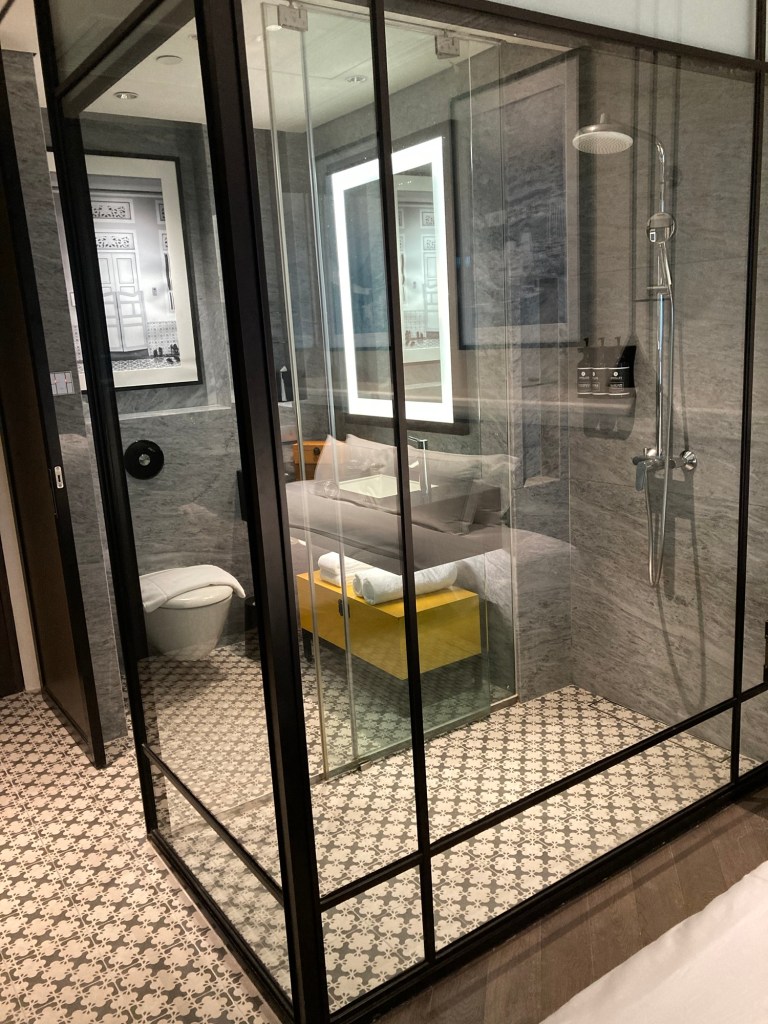 Our room however had a couple of quirks. The first was the bathroom walls were all glass as you can see from the above photo which was not ideal for persons of a shy and retiring nature.