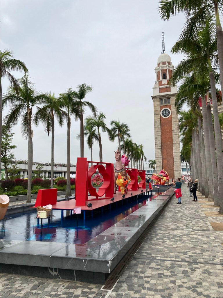 I ended up back at the Clock Tower – the only remaining part of the Kowloon-Canton railway line terminus station which was relocated to to Hung Hom in the 1970s. I was able to see the display of ‘Year of the Fire Horse’ installations up close in their beautiful colours. These had been spectacular all lit up the night before.
