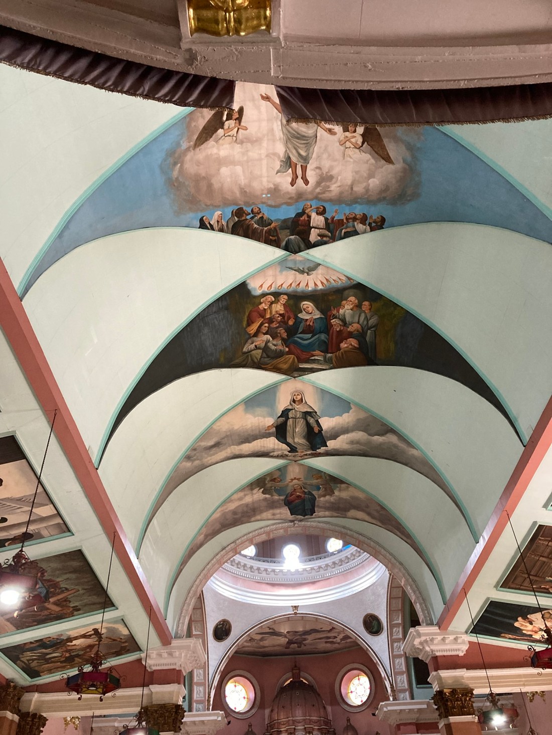 We were supposed to go into the church but it was impossibly full so we continued around to the back of the church through little crowded market lanes to the entry behind the altar, all the while listening to the priest conduct the service, and the magnificent organ playing, as we shuffled along in the heat. It was a relief to enter the cool of the underground passages of the church. We shuffled past the replicas of the Black Nazarene – a statue of a black Christ, lavishly dressed and weighed down by His cross. The real one is in the church, high up above the altar, where people file past to touch his foot. Before Covid came along they used to kiss it.
