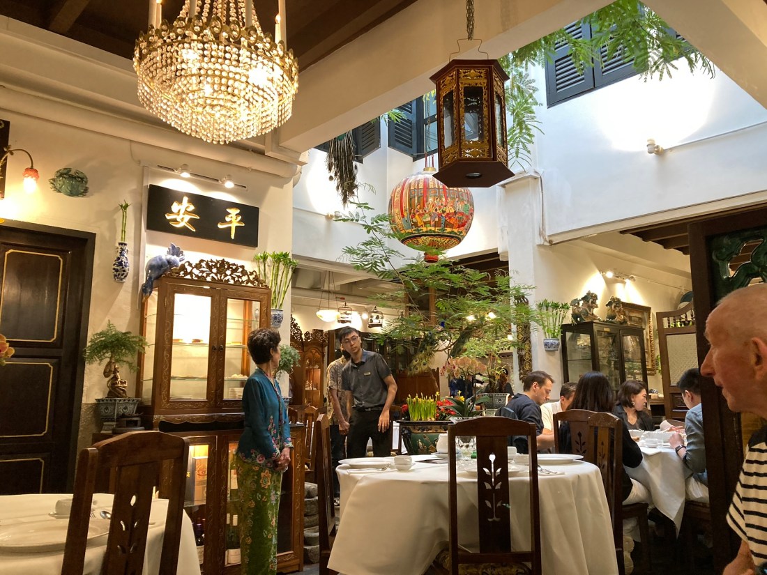 At 6pm we caught up with our friends Alan and Noelle and headed off for dinner at a Restaurant called True Blue Cuisine. Nothing whatsoever to do with Australia. It was a very traditional restaurant that specialised in Peranakan traditional cuisine. We were not sure what that is but they make a fabulous prawn omelette, the staff were very kind and friendly and the decor is something to see.