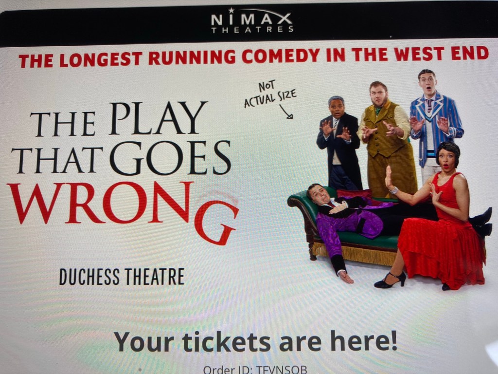This evening we headed down to Covent Garden where we had a lovely meal at a restaurant called the Banana Tree. We had tickets to “ The Play that goes wrong” at the nearby Duchess Theatre. It was an absolutely hilarious evening.