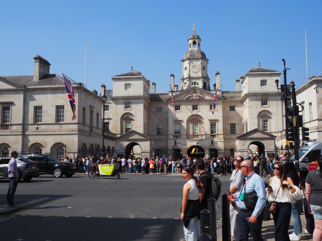 We kept walking inland towards the Horse Guards where the crowds were becoming very thick. There was a half dozen mounted police waiting in a side road so we thought something might be happening but didn’t know when or what.